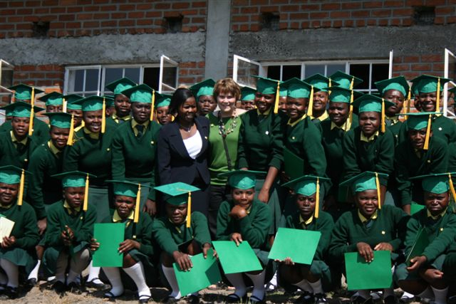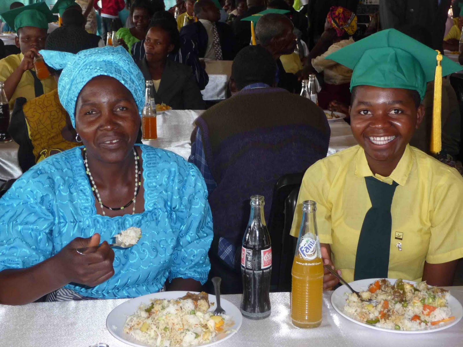 The girls receiving full scholarships to Pearson College and the Northern Lights College were recognized and photos were taken. The girls received their diplomas with confidence and poise. Memory, Henry and I, as well as the teachers and board members were just bursting with pride as these 73 young women took the stage one after another, receiving their diplomas with their heads held high. They finished the program by singing one of the songs that they wrote, entitled ‘I’ll Never Be The Same Again’. I have recorded the song and cannot wait to share it with you all. It is stunning. [When Christie returns, I will upload it to this blog so all the world can hear it.] Following the ceremony we gathered for pictures and then were taken on a tour of the campus by Henry while the hall was reorganized for lunch. During lunch, girls sat with their parents and the special guests and teachers sat at tables with the girls. This is a huge break in tradition, as usually the special guests sit alone in a special room and receive special food. The food was prepared in the three HUGE pots that APU now owns (one new one and two refurbished used ones). The servings were enormous but the girls had no trouble cleaning their plates! A special treat was that every girl received a fanta or coke.